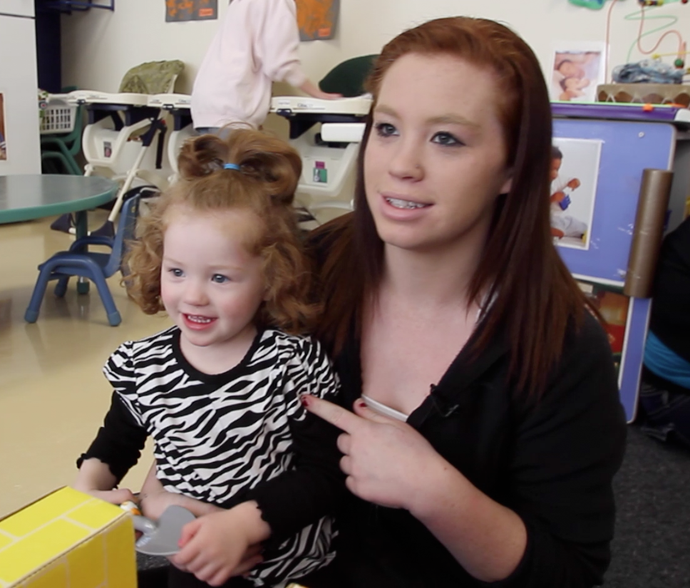 At the Bryan Focus Program, Payton attended regular high school classes while Maddie was right down the hall in the school’s high-quality child care facility. Payton has liked having her little one so close. “If there’s an issue of or she’s having a bad day and wants her mom, I can just come down and see her,” said Payton.