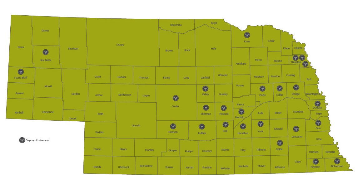 Map showing Sixpence grantee sites across Nebraska. The most recent round of grants puts the total of sites at 25.