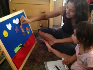 A young mother showing her skills as her child's most important teacher.