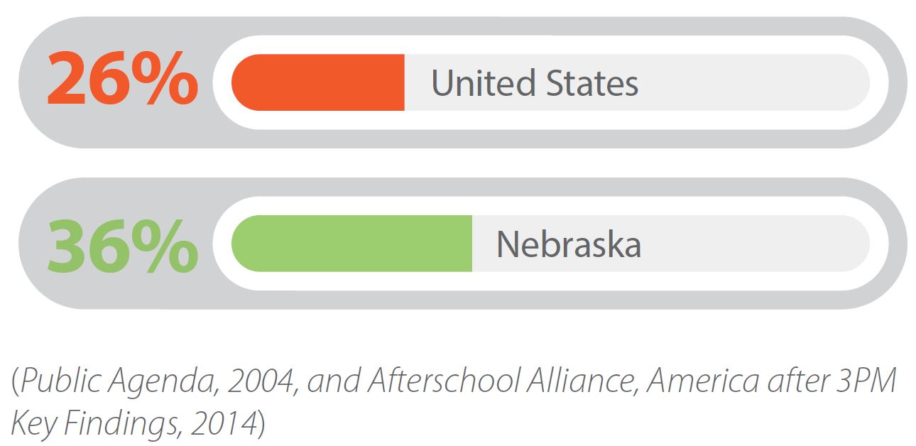 These national numbers are stunning, but in Nebraska, the challenge is even greater. 36% of our state’s students are unsupervised afterschool, compared with the national average of 26%.