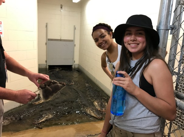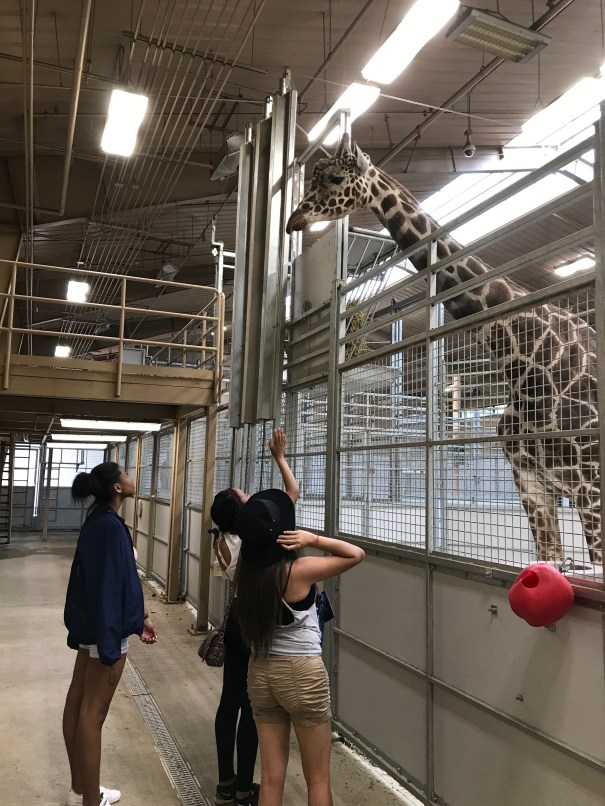 Later that afternoon, Anne set us up with a VIP tour of Omaha’s Henry Doorly Zoo and Aquarium – recognized as one of the best zoos in the world. During our afternoon tour at this Nebraska treasure, the girls gained hands-on experience learning about the zoo’s Center for Conservation and Research and ongoing research in molecular genetics, reproductive physiology, nutrition, and conservation medicine. The Center’s work is designed to support global biological conservation efforts, and the girls were able to see how local activities can have a global impact. Oh, and we also got to meet some amazing animals!