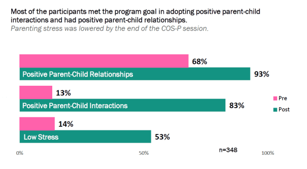 - COS-P was effectively implemented across communities, with parents demonstrating significant increases in parenting skills, improved relationships with their children, and decreased parenting stress