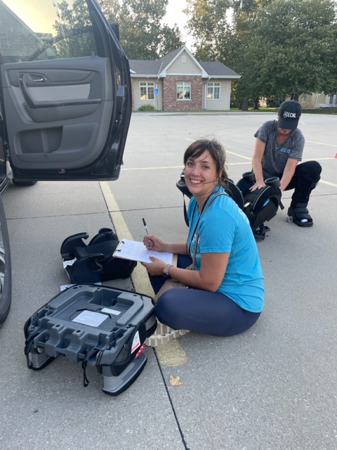 For the recent event, Dostal and Elsasser joined with seat technicians from Head Start and Three Rivers to remove each seat, inspect straps for safety, check expiration dates and recall notices, and then reinstall the seat properly while showing the family how to do so. A highly experienced Head Technician, Anita Miller, also reviewed each installation. Sixpence provided a meal for families in attendance and community organizations such as the Early Development Network, Methodist Fremont Health, and Life Choices offered resources while families waited.