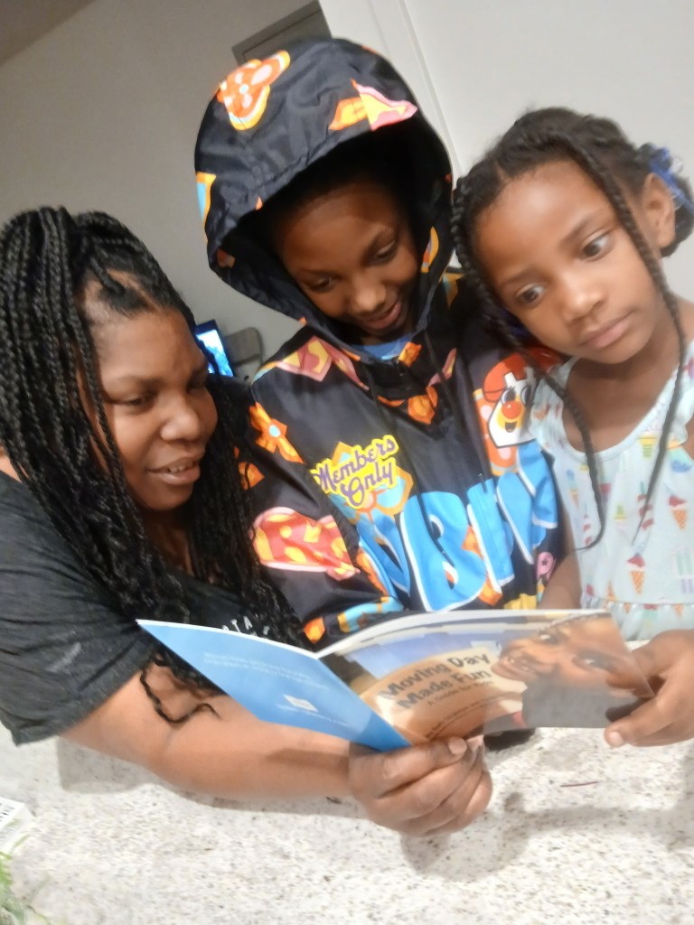 Yanki Smith is the mother of 3 girls, Miracle (23), My’Kiyah (11), and Ya’Miyah (6). Since Smith has two younger daughters, one of whom is a good age for NGR books, Stratman thought they would be a “really good fit.” Smith was making the move from the Southside Terrace-Indian Hill neighborhood to the Highlander neighborhood and, as she says of her two youngest girls, “they wanted to move but they didn’t want to move. They were iffy but happy.” What she describes is the combined excitement and fear involved in a move, especially for children. Her kids were moving to a bigger place with 3 bedrooms, but they were leaving friends and a familiar place behind.