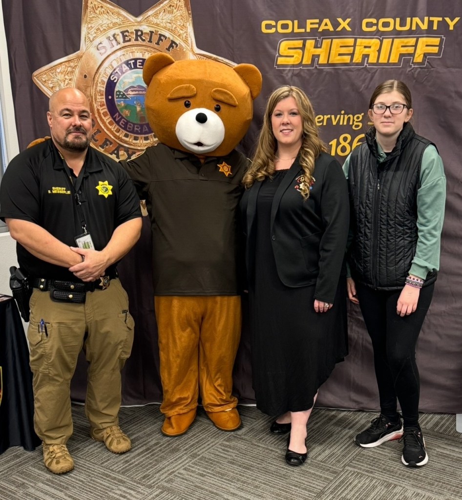 You’ll notice the civil service focus of all the books, and that’s no accident. Suzi’s grandfather was the sheriff for Butler County and her grandmother was a 911 dispatcher for Colfax County. Suzi, in addition to walking in her grandmother’s footsteps, is a charge nurse for St. Joseph’s Court in David City and runs a home healthcare business. Kendra, who has aspirations to be a deputy when she’s old enough, takes after her great-grandfather and has done ride-alongs with local Sheriff Shawn Messerlie to distribute food to local families in need, participates in the Trunk or Treat event where car trunks are decorated for Halloween and candy is handed out to children, and often dresses as Deputy Brown Bear, a character created by Sheriff Messerlie to introduce children to and make them more comfortable with law enforcement officials.